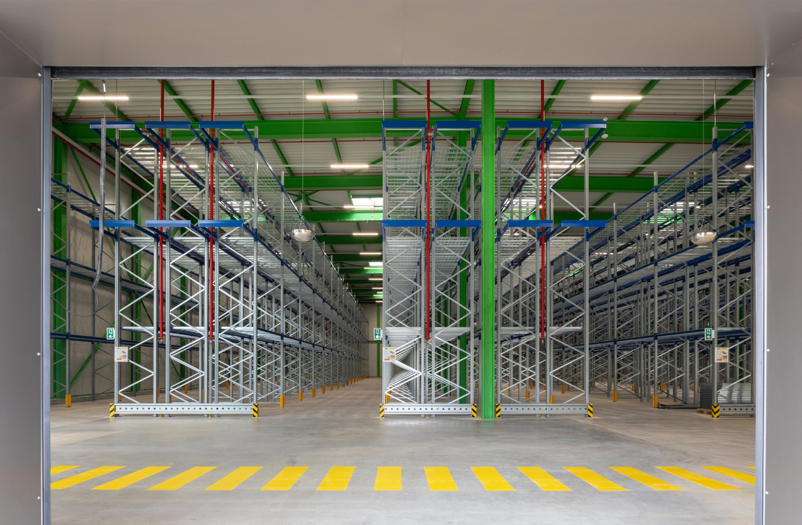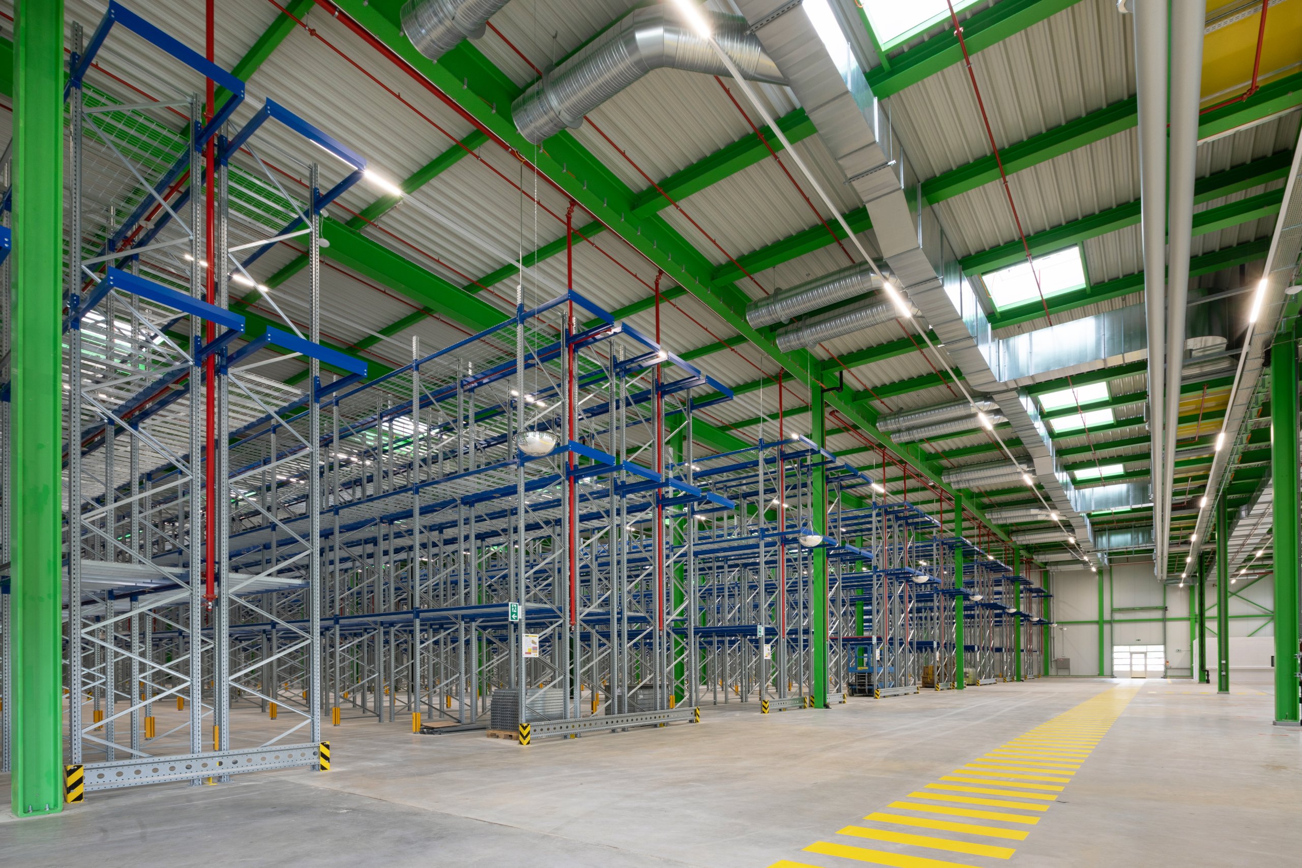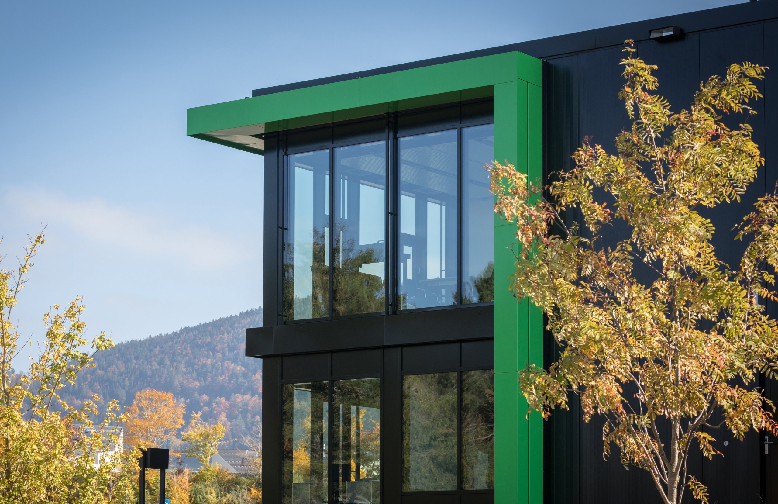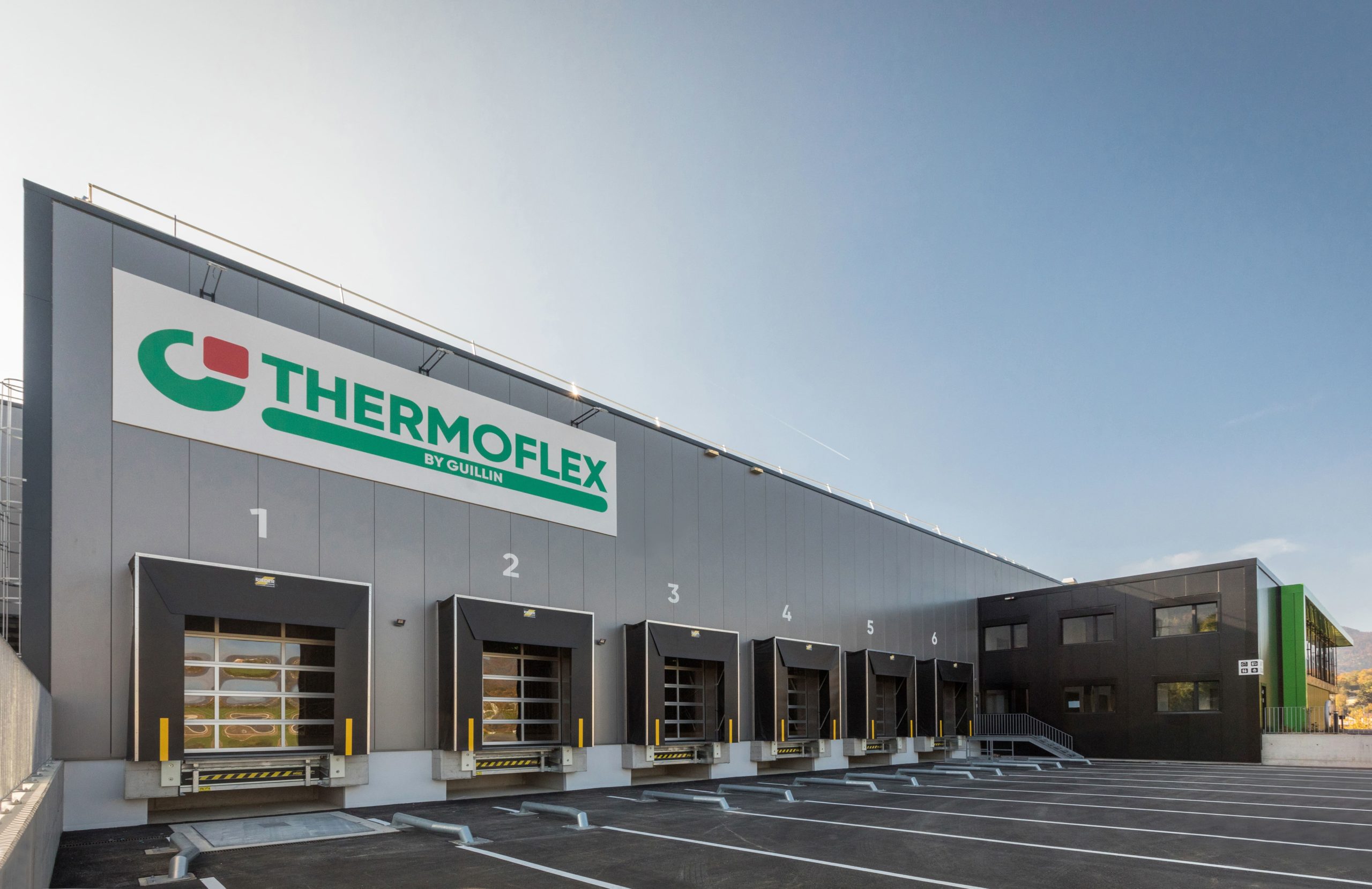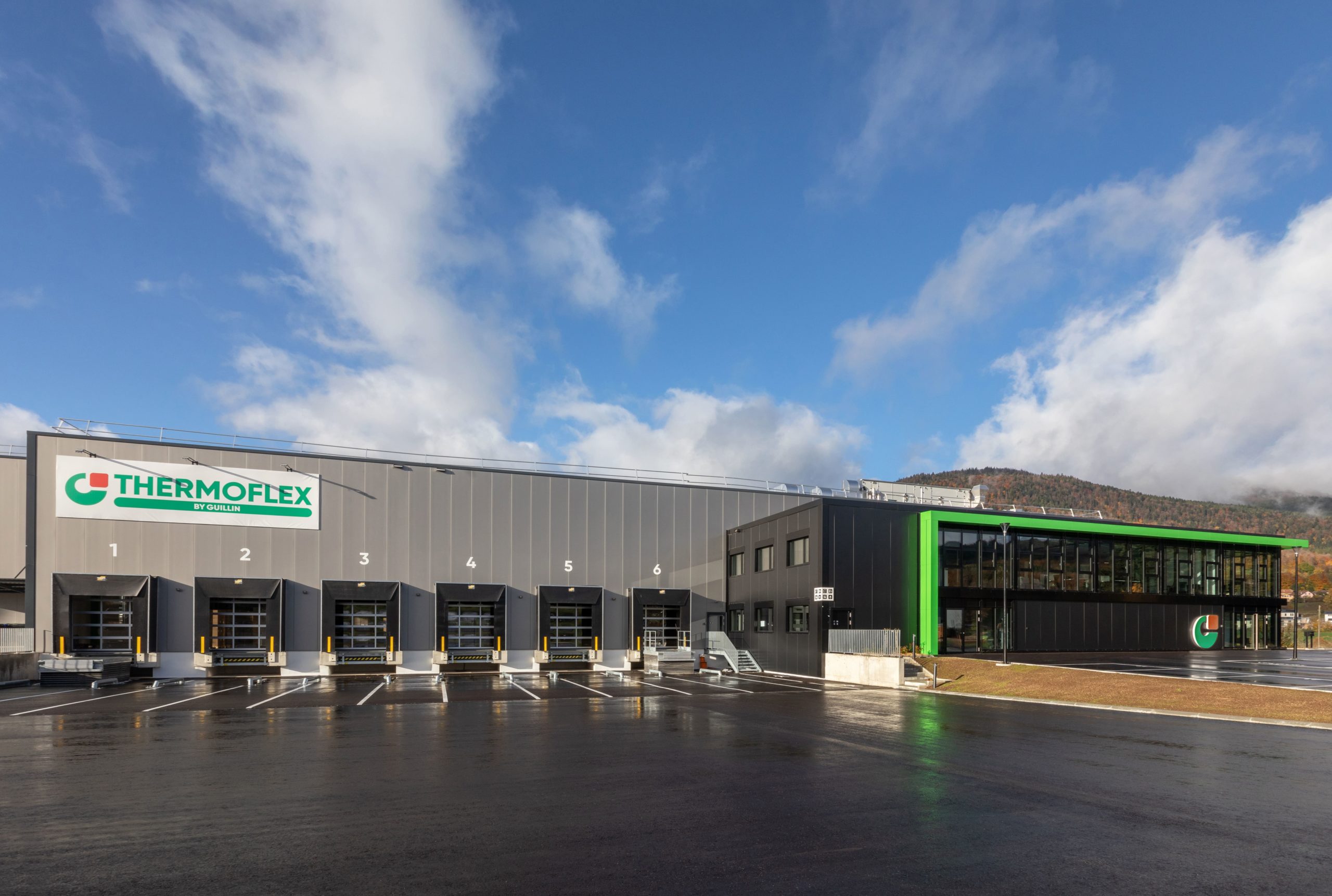 Pour la halle logistique, le dimensionnement de la structure porteuse et les mesures de protection incendie, en particulier le système sprinkler, ont été conçus dans une logique de pérennité, afin de permettre une extension future du bâtiment. Pour la partie administrative, le choix d’une façade en système poteaux-traverses s’est imposé afin d’offrir une qualité de finition élevée, des espaces de travail lumineux et agréables à vivre, ainsi qu’un cadre accueillant et soigné pour recevoir les clients.