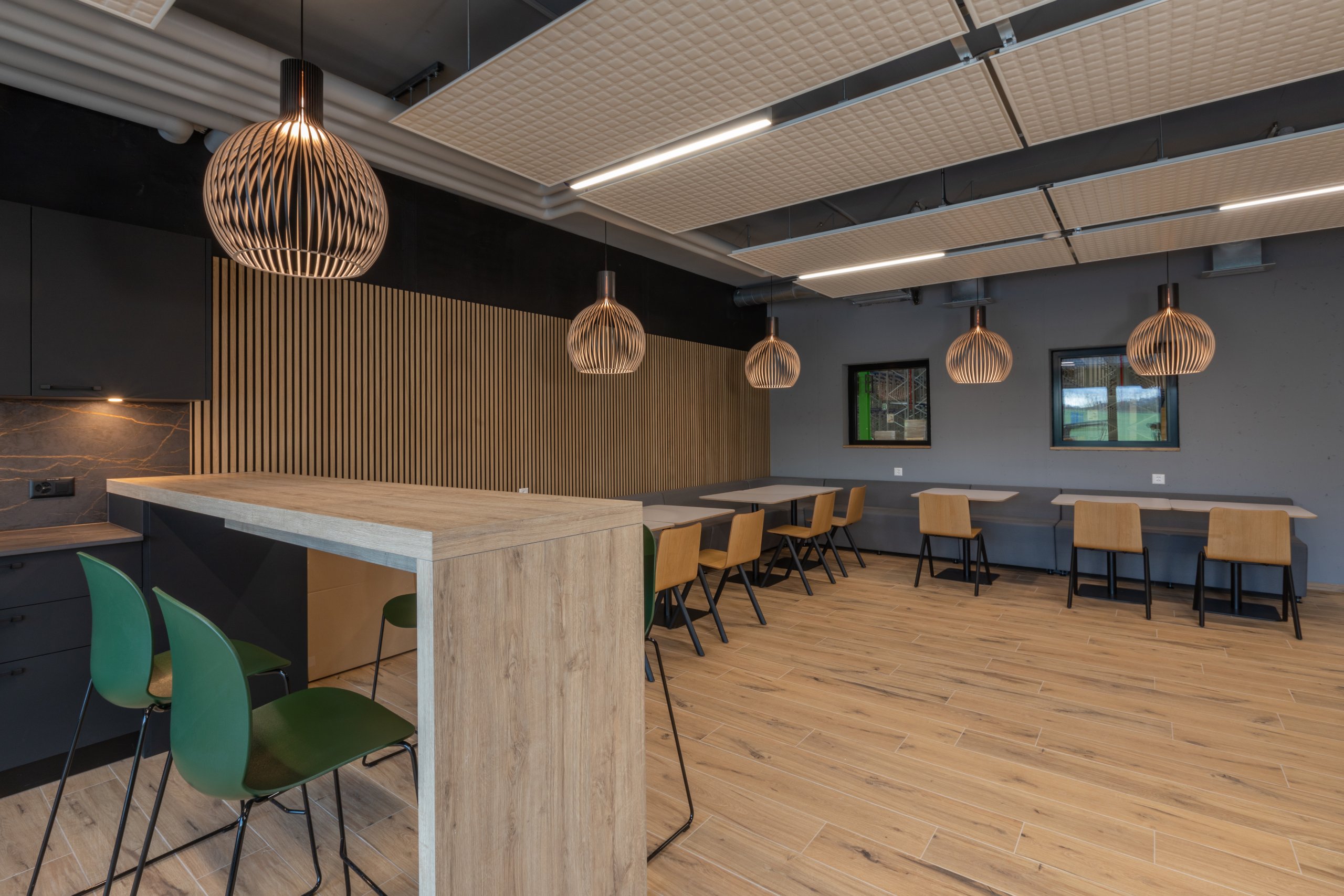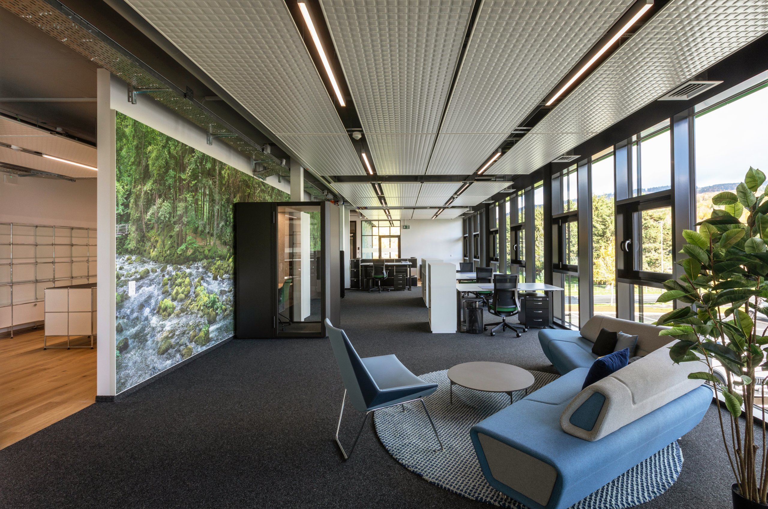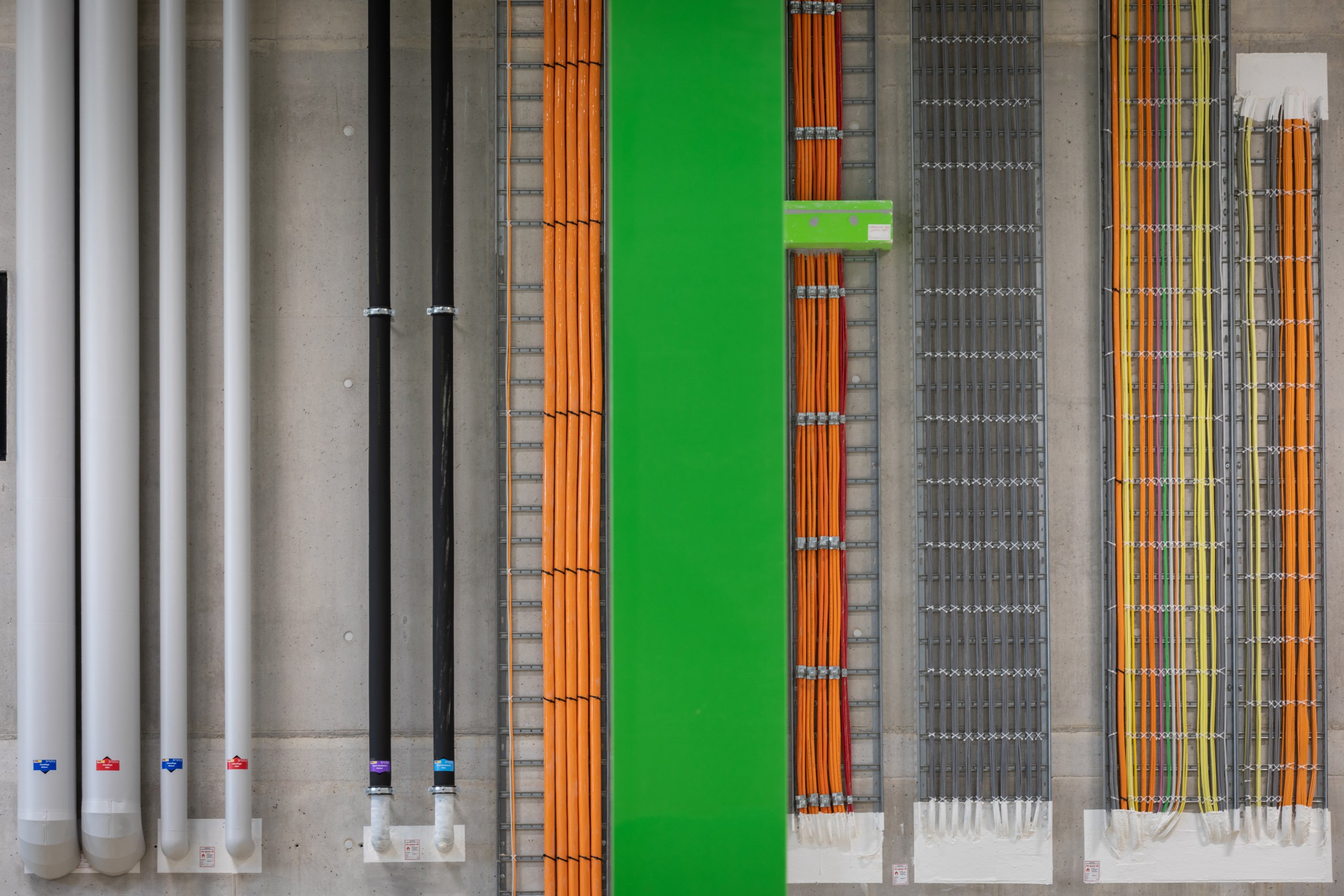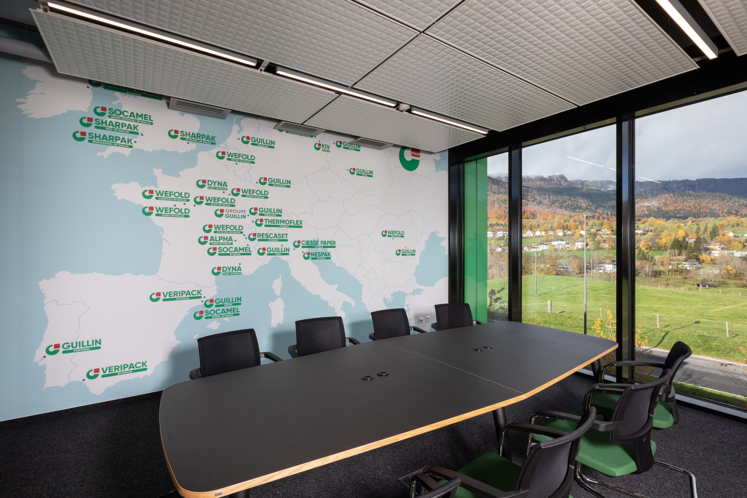 Pour la halle logistique, le dimensionnement de la structure porteuse et les mesures de protection incendie, en particulier le système sprinkler, ont été conçus dans une logique de pérennité, afin de permettre une extension future du bâtiment. Pour la partie administrative, le choix d’une façade en système poteaux-traverses s’est imposé afin d’offrir une qualité de finition élevée, des espaces de travail lumineux et agréables à vivre, ainsi qu’un cadre accueillant et soigné pour recevoir les clients.